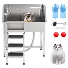 86cm Hundebadewanne Haustiere aus Edelstahl Hunde Katzen Pflege Dusche mit Trepp