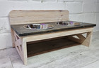 Futterbar Buche mit 2 Näpfen - Futternapfständer Hund Katze - Napfhalter