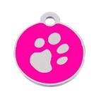 Adressanhänger mit Gravur - rund klein - mit Pfote - pink/silber Schmuckanhänger