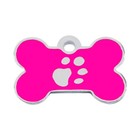 Adressanhänger mit Gravur - Knochen mit Pfote klein - pink/silber Hundemarke